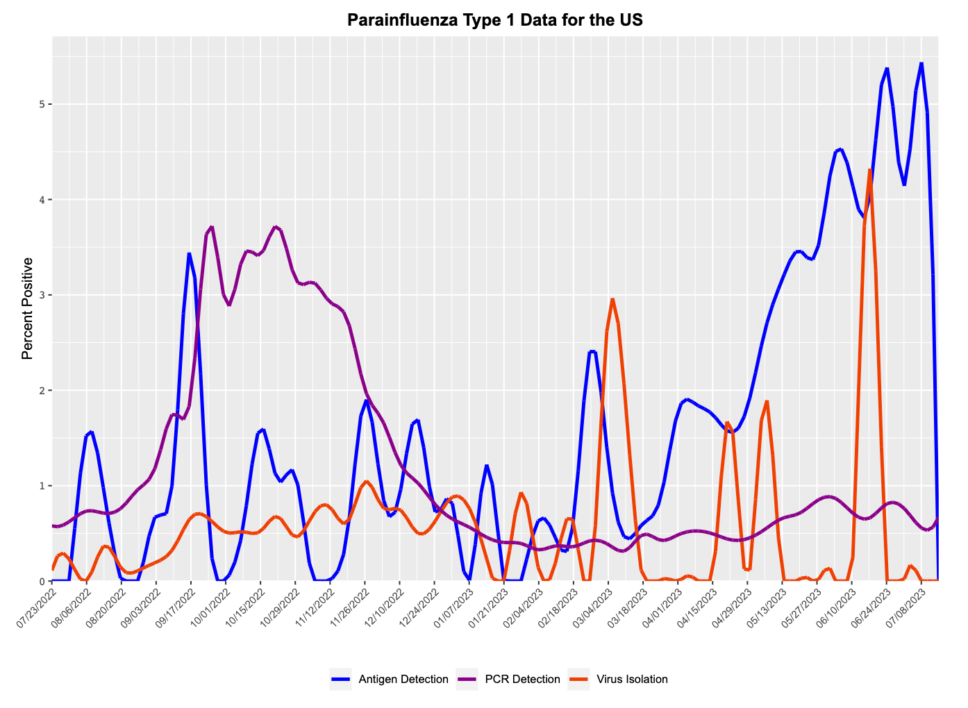 What many people don’t realize is that most of our disease surveillance systems have poor resolution. Many of the data sources I check for this newsletter only provide national-level figures, and the data is usually limited to percent positivity. Here’s a typical example—not very interpretable.