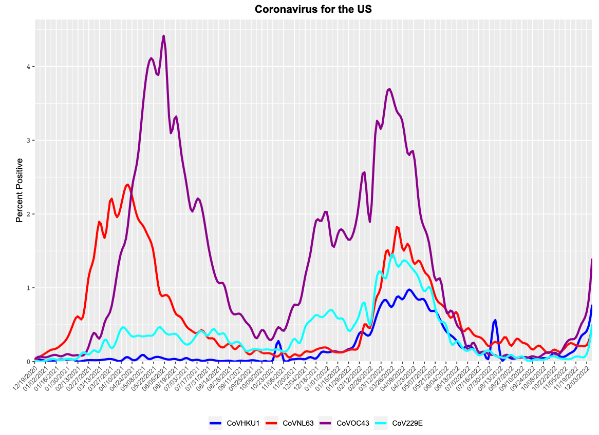 The seasonal, non-Covid-19 coronaviruses may be next in line to give us a hard time, based on data from CDC, Biofire, and Georgia. If it weren’t so awful, I would almost be impressed at how thoroughly we seem to be cycling through the respiratory viruses that collectively comprise cold and flu season.