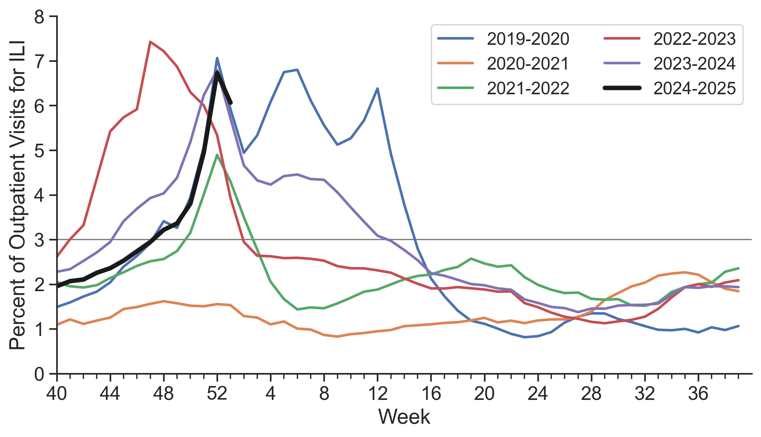 Influenza-like illness made a welcome (if not entirely believable) retreat during the week ending January 4th.