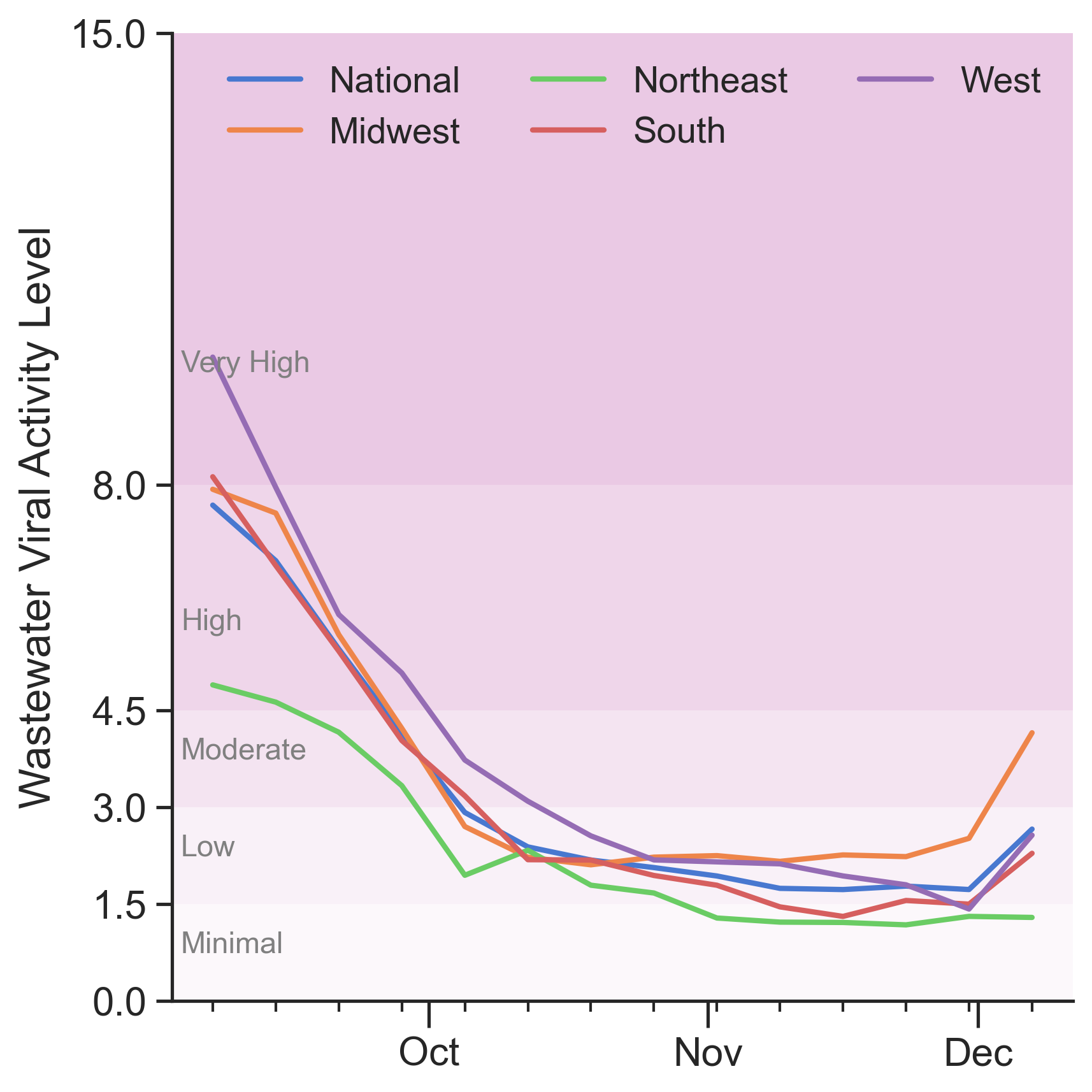 Things are still quiet, but they are picking up. Wastewater activity is generally low but increasing in most places, with the highest activity in the Midwest.