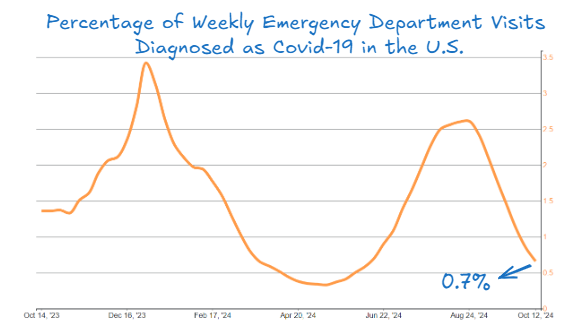 We are now in the new influenza season (2024-2025). Outpatient visits are up slightly, with 2.1% of visits to the doctor are for fever and cough or sore throat, up from 2.0% last week.