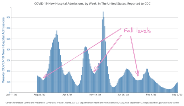 Covid-19 hospitalizations rose again this week to 18,871, up from 17,360 last week. That’s about a 9% increase, which is lower than the 16% increase the week prior. For context, current hospitalization levels are half of those from the same time last year.