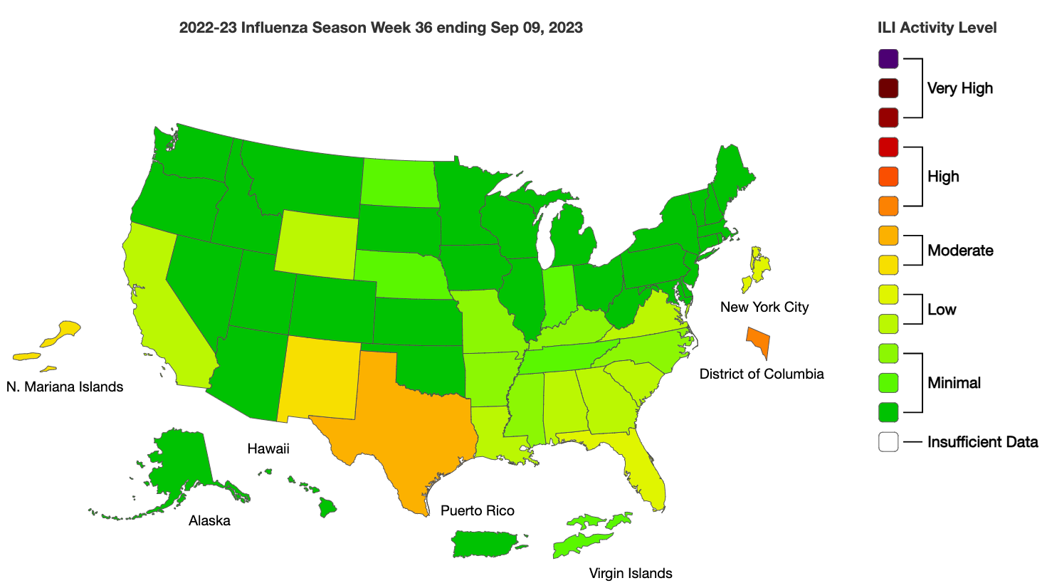 Overall rates are still low, I’m just updating you on the latest. Most of the country remains in the minimal or mild categories, and activity remains below baseline nationwide.