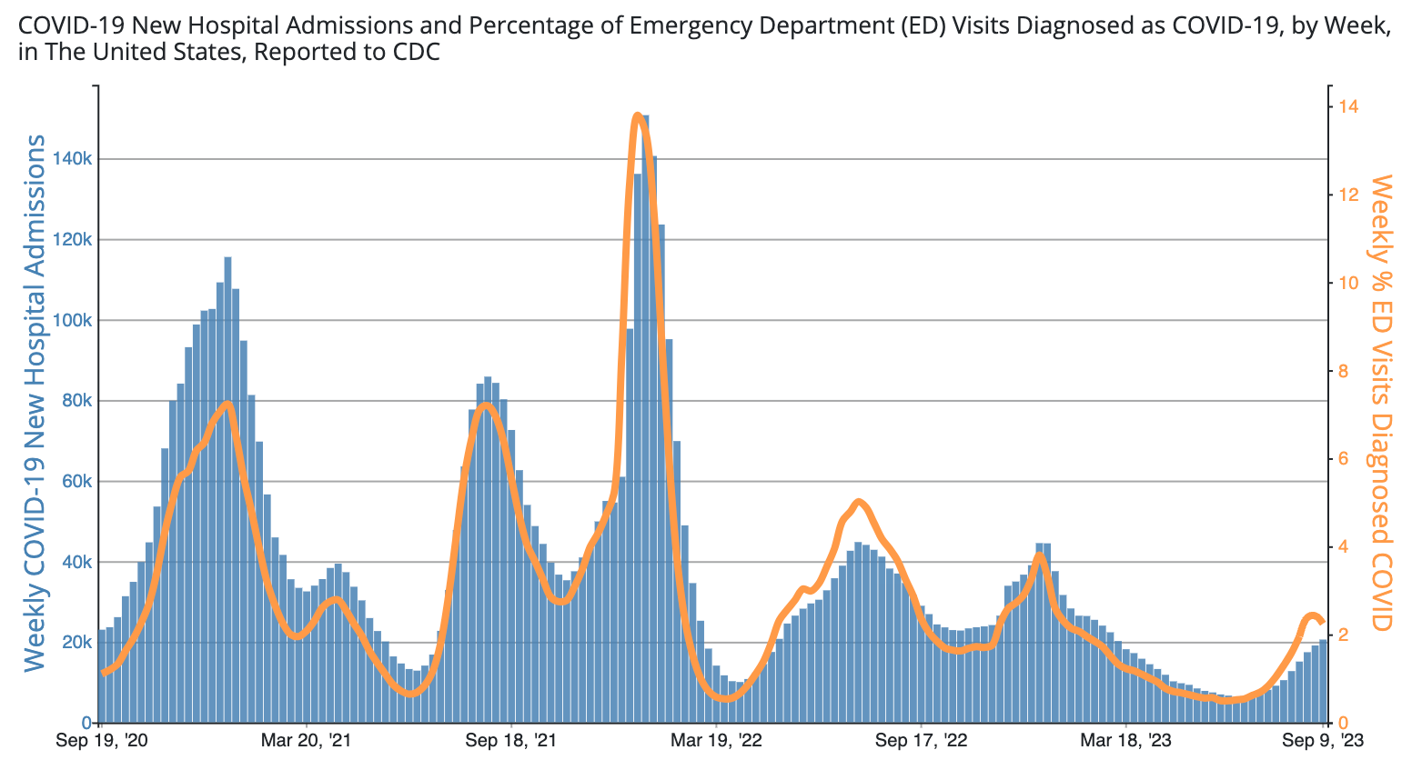As an aside, it is interesting to me that the summer Covid-19 wave, early RSV activity, and now ILI are all beginning in the South. Some may be mixed signals—Covid-19 can sometimes be picked up by ILI, because it can cause fever and cough—but I do wonder what, epidemiologically, is causing the pattern.