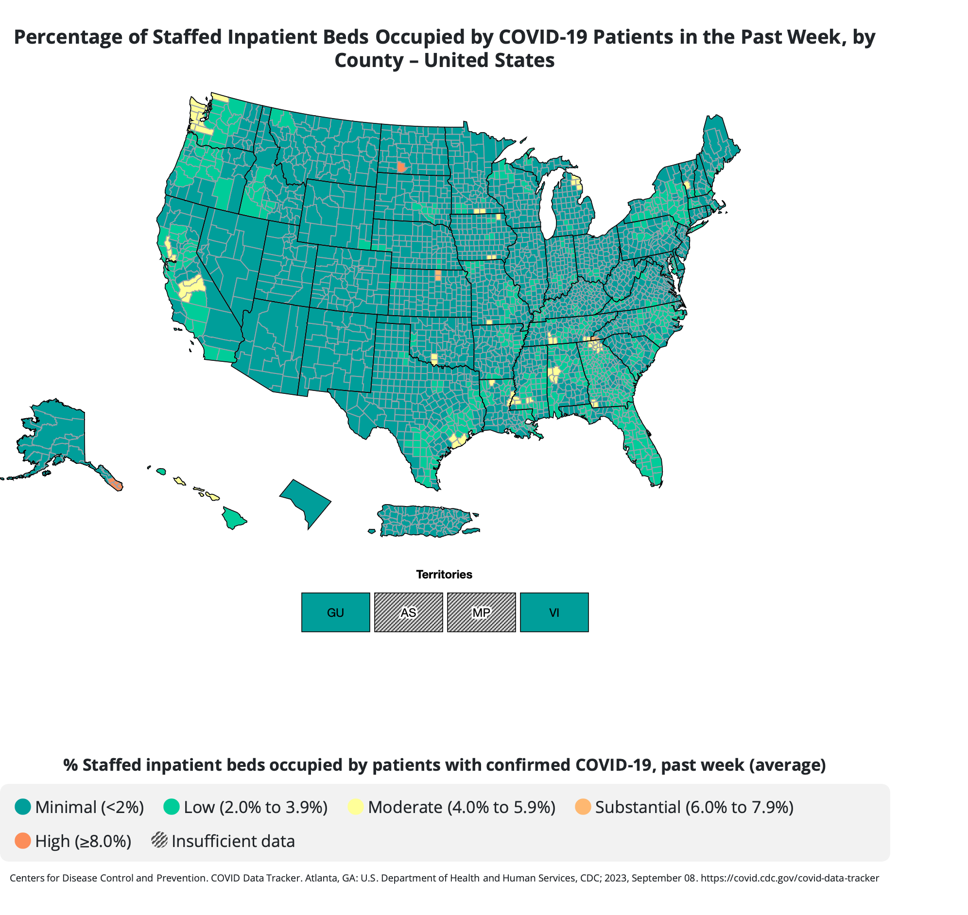 As in previous weeks, the Southern region is most heavily affected. I’m not seeing many signs of slowing there, yet. Florida and Georgia, in particular, have high levels of Covid-19 activity. Parts of the Western region, notably Washington state, are also affected.