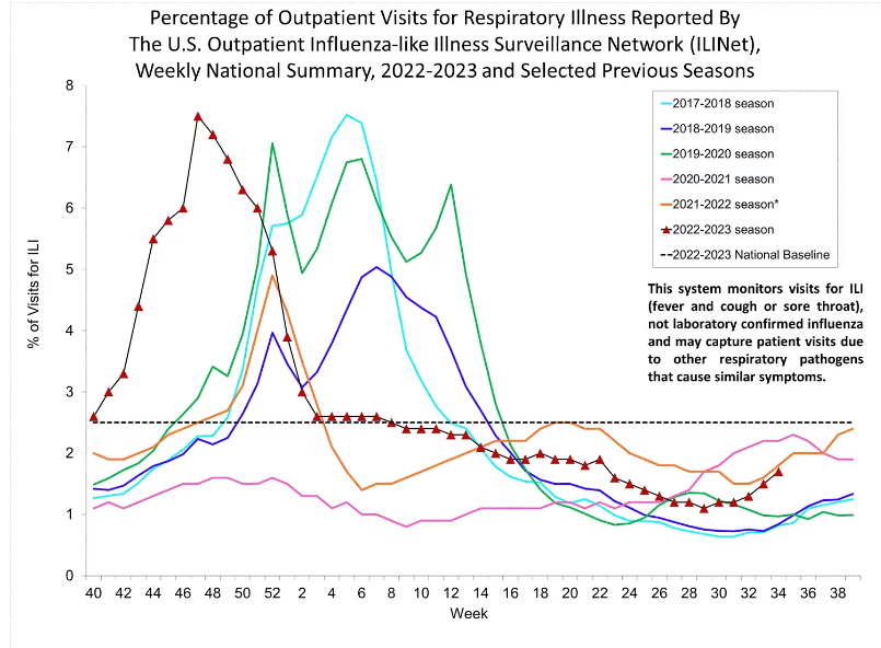 To be clear, current ILI activity is far below what we see during the height of flu season, so I’m not ringing the alarm but rather commenting on trends.