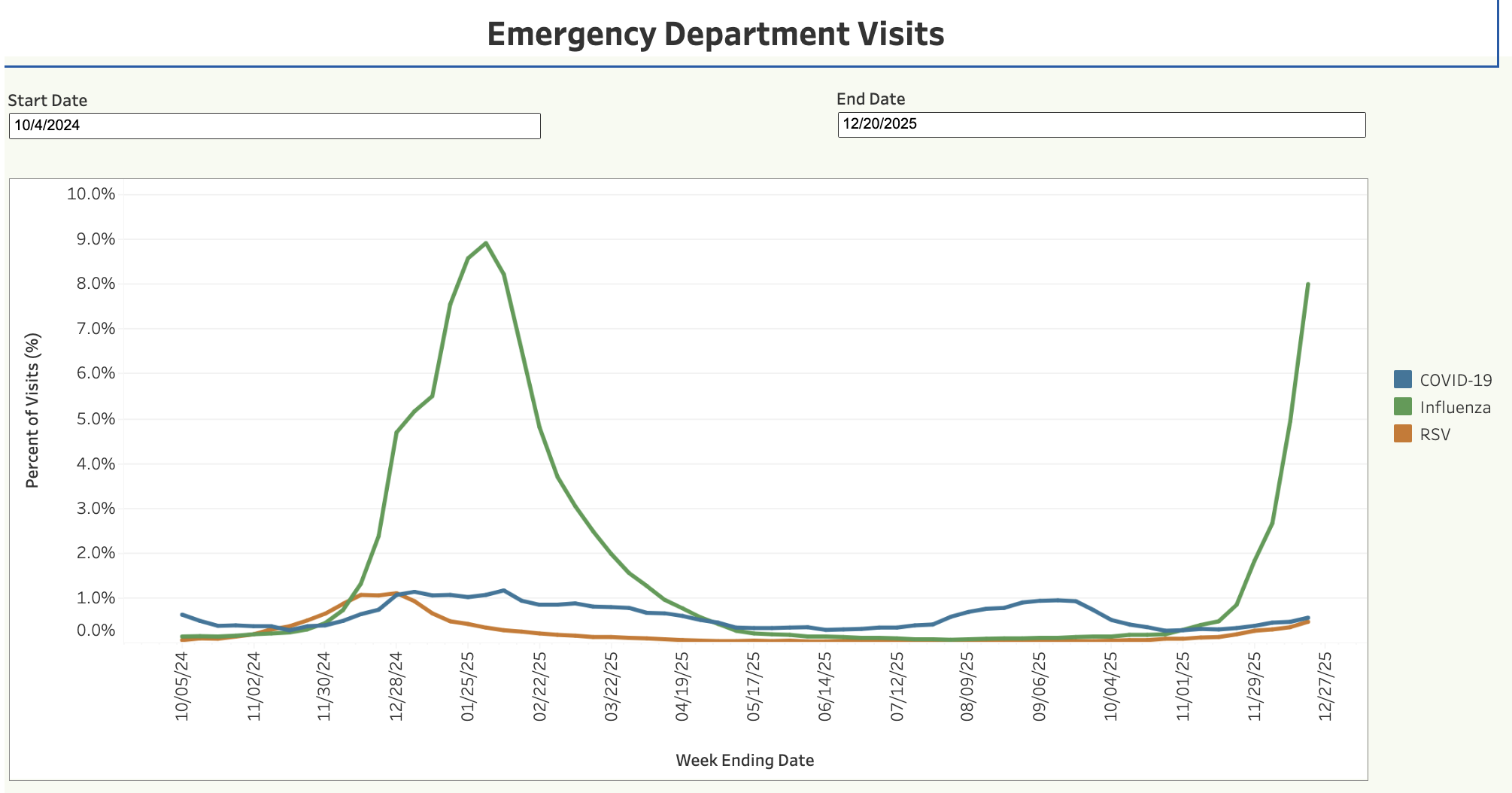 Flu is spreading widely right now, with steep growth curves in many places. We’re seeing doubling and tripling of indicators (e.g., emergency department visits for influenza) from the prior week.