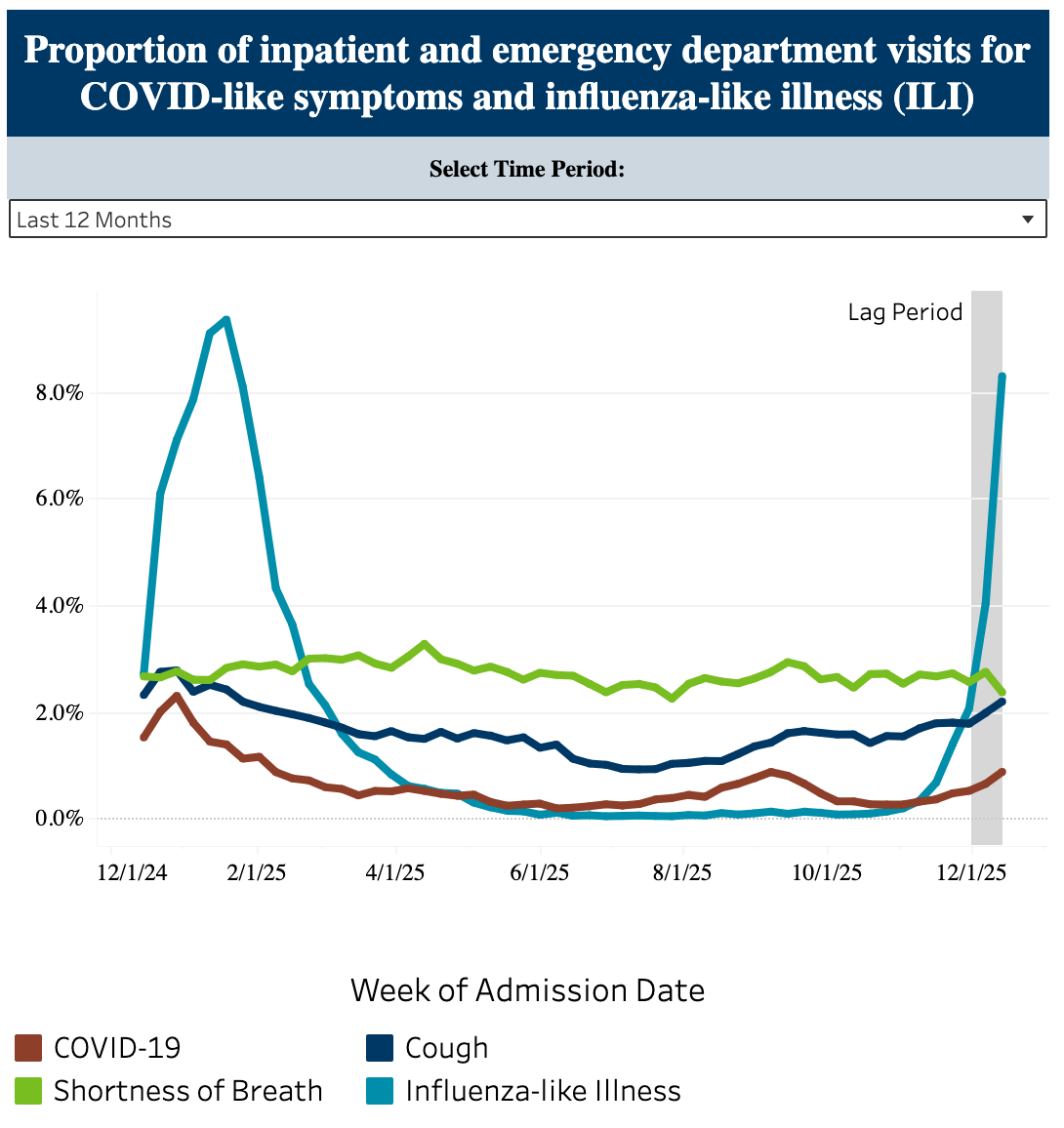 Outpatient ILI is the percentage of visits to the doctor that are for fever and cough or sore throat. ↩